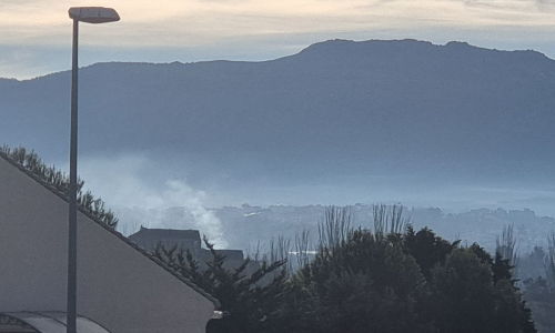 Desde Pedro Verde se ve que buena parte del humo de las quemas de residuos agrarios se acaba concentrando en las partes bajas de las laderas montañosas y especialmente en la capital, sobre todo cuando el aire procede del sur (suspiro del moro), que es lo habitual.