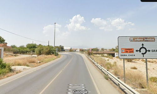 Rotonda en la GR-3303 pk. 6’800, en el municipio de Las Gabias, presenta considerable riesgo de sufrir accedente por obstáculos que limitan la visibilidad entre los vehículos procedentes de Alhendín y de Pedro Verde.